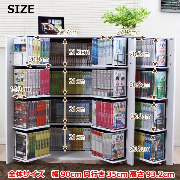 ■最大収納はDVDで約792枚、CDは約1128枚の書棚ストッカー収納庫です。