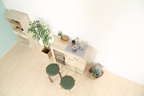 ホワイトウォッシュのカラーなので、お部屋のインテリアにも合い、キッチン収納としてだけではなく、リビングや書斎にも置けるデザインです。