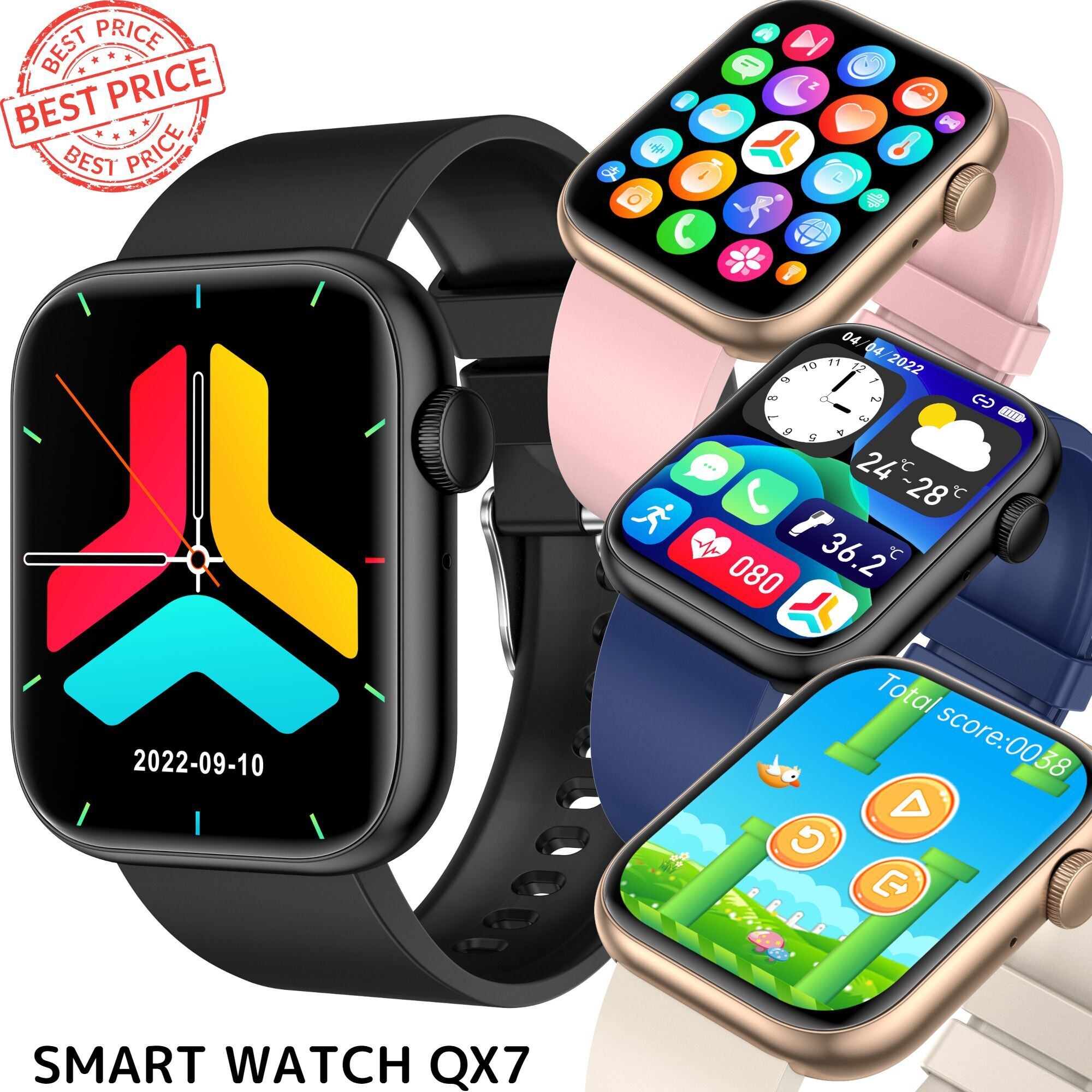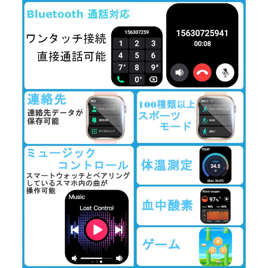 スマートウオッチ体温血圧測定血中酸素1.85インチ通知技適認証Qx7